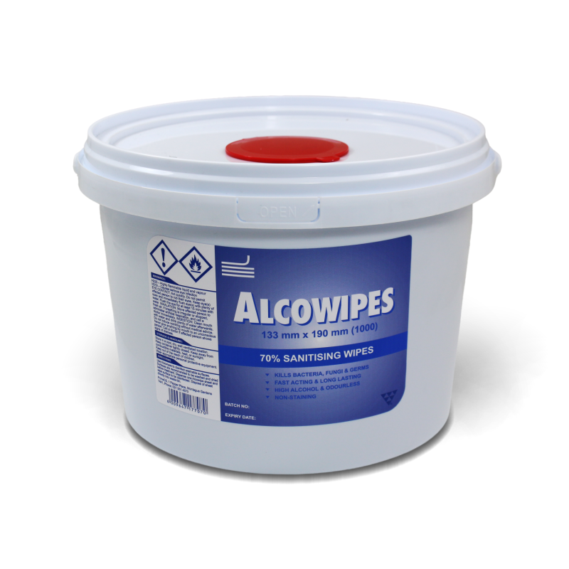• A bulk-format bucket containing 1000 individual sanitising wipes designed for versatile, high-traffic use